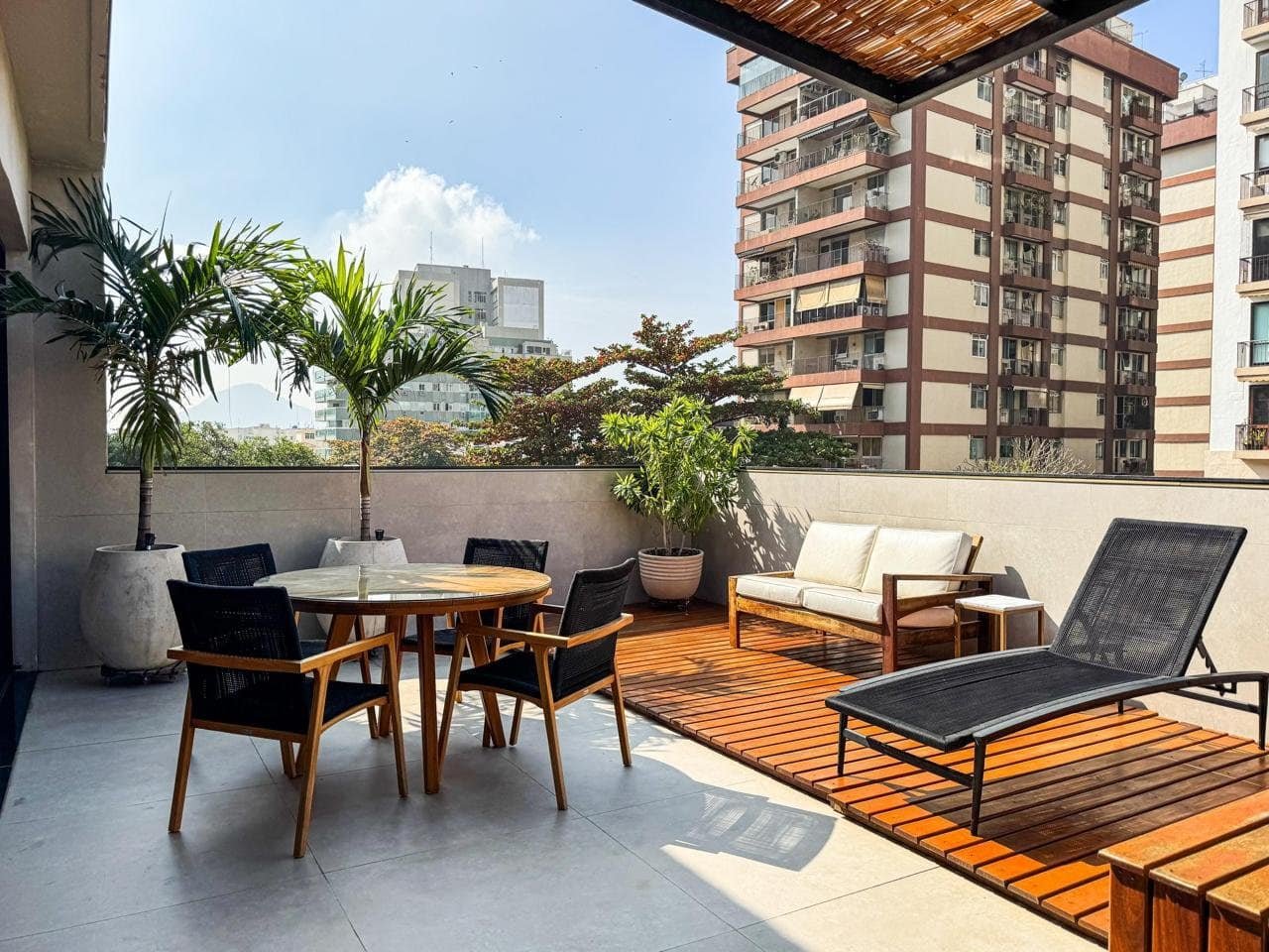 Cobertura linear totalmente reformada na Gávea, unindo conforto, privacidade e lazer em um só endereço. Com 153 m² muito bem distribuídos, o imóvel conta com 2 quartos, sendo 1 suíte, além de um banheiro social e uma ampla sala integrada à cozinha e à área de serviço, proporcionando um ambiente moderno, funcional e cheio de estilo.