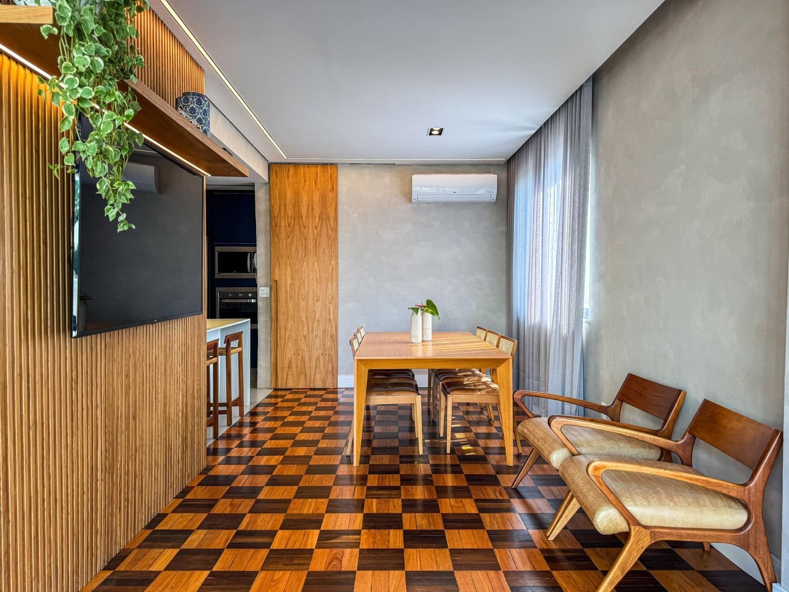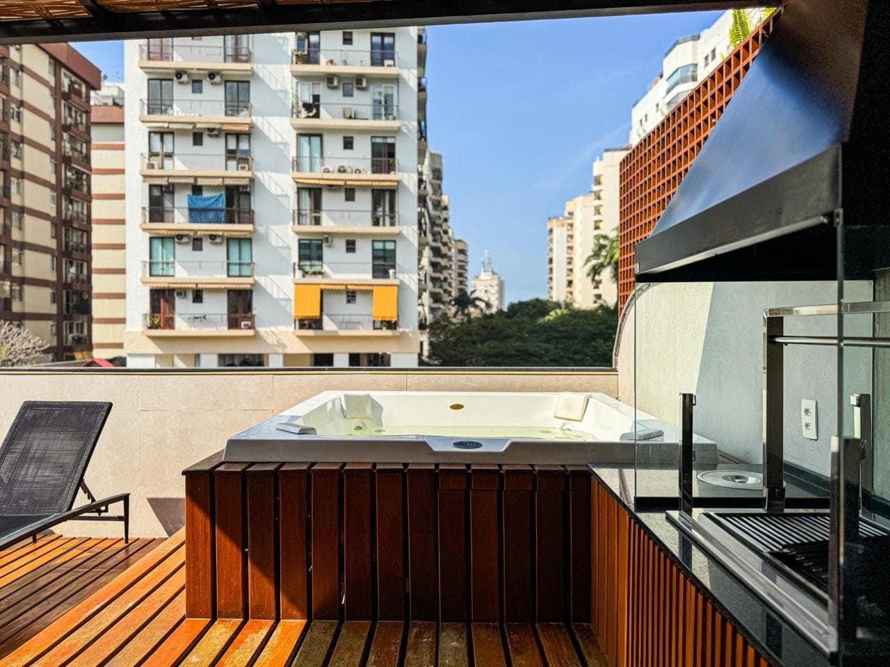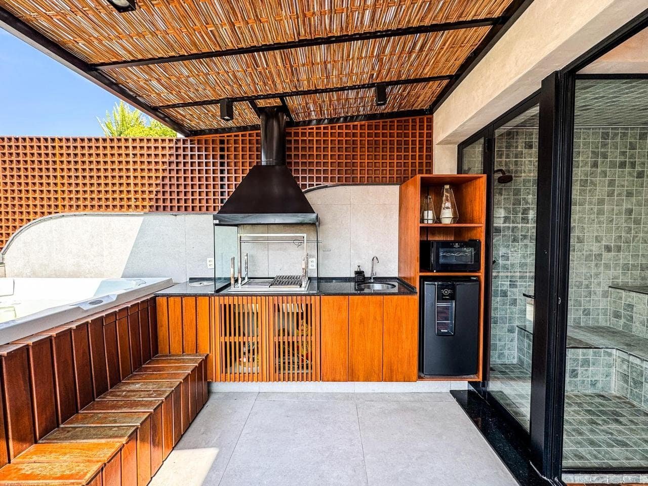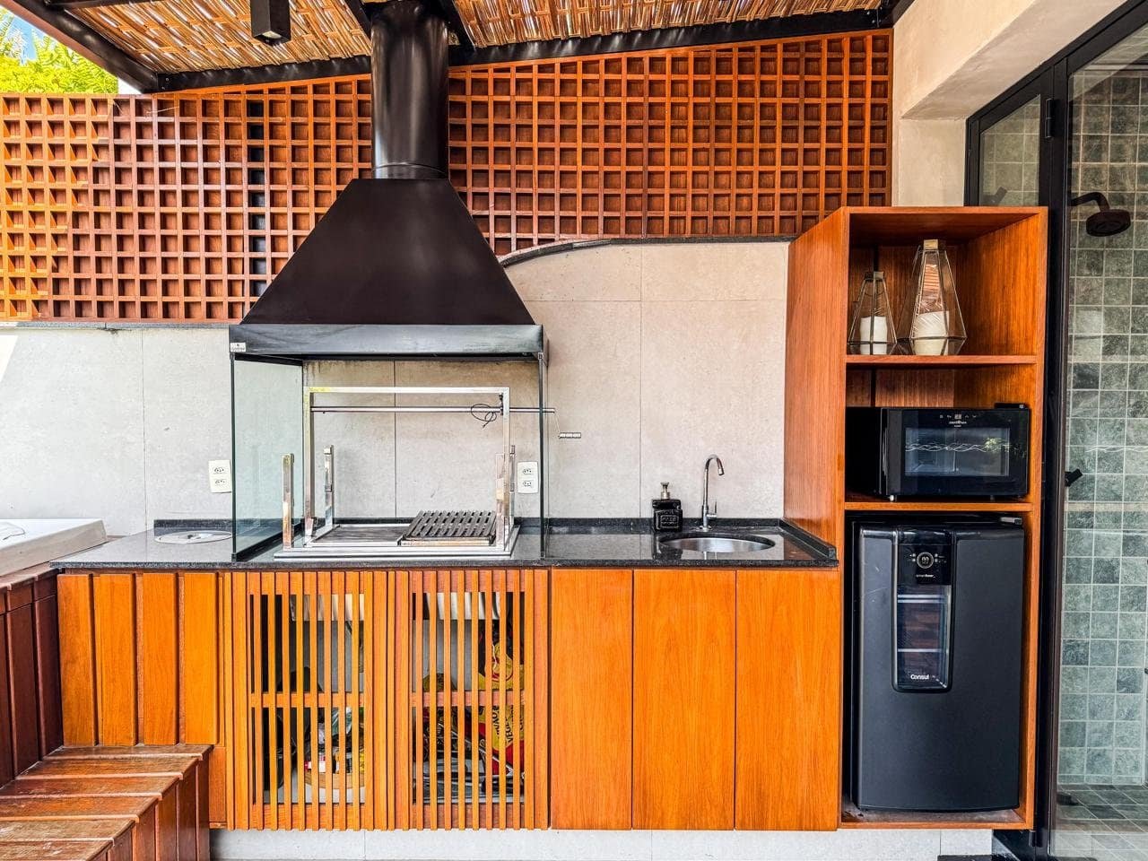 O grande destaque fica por conta da área externa — um verdadeiro refúgio particular — equipada com sauna, banheira de hidromassagem e churrasqueira, perfeita para momentos de relaxamento ou para receber amigos com conforto e elegância.