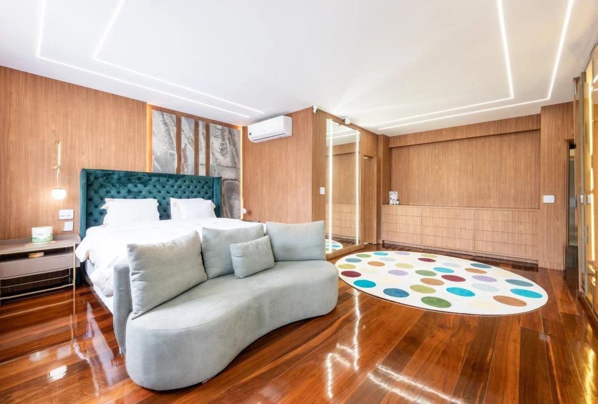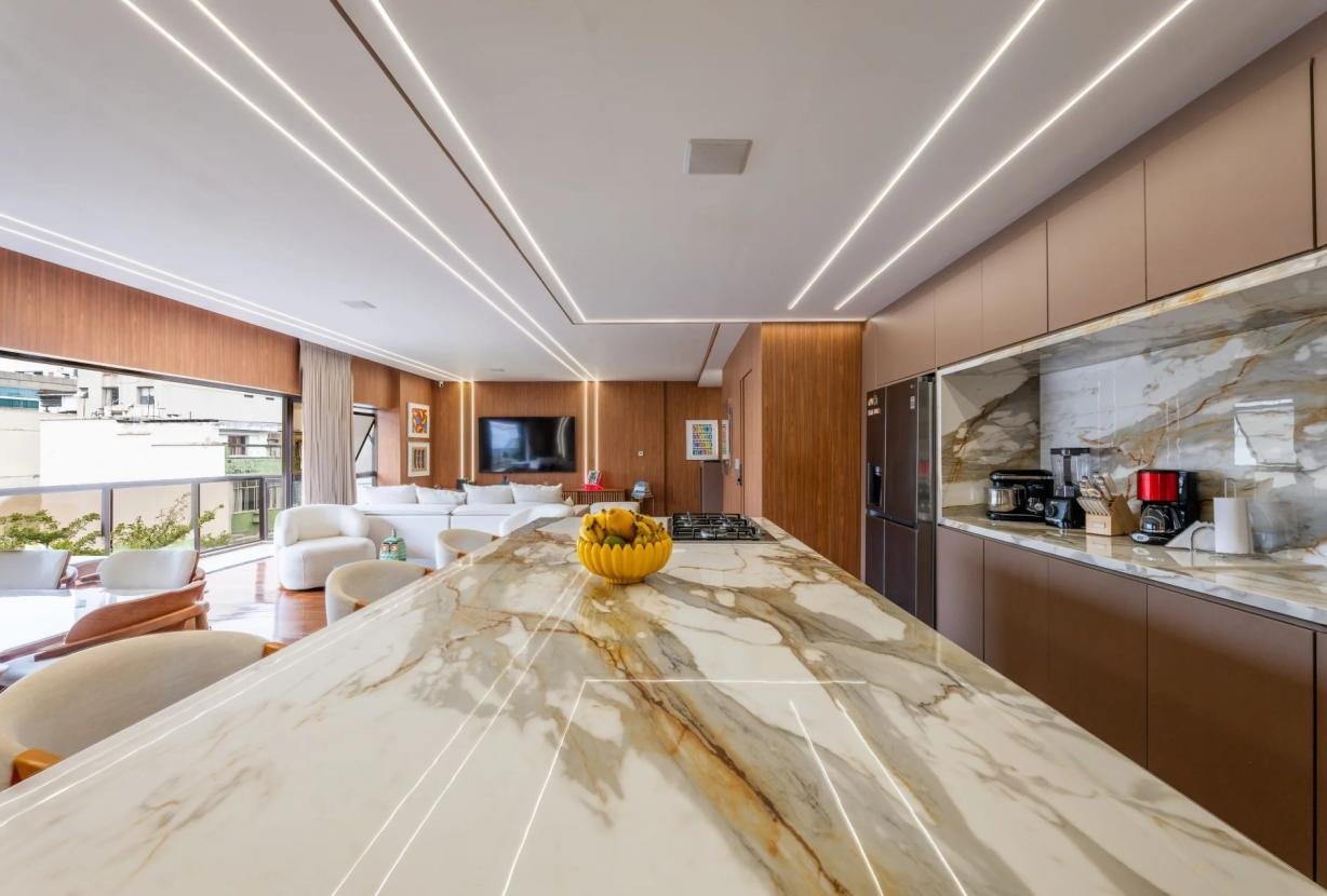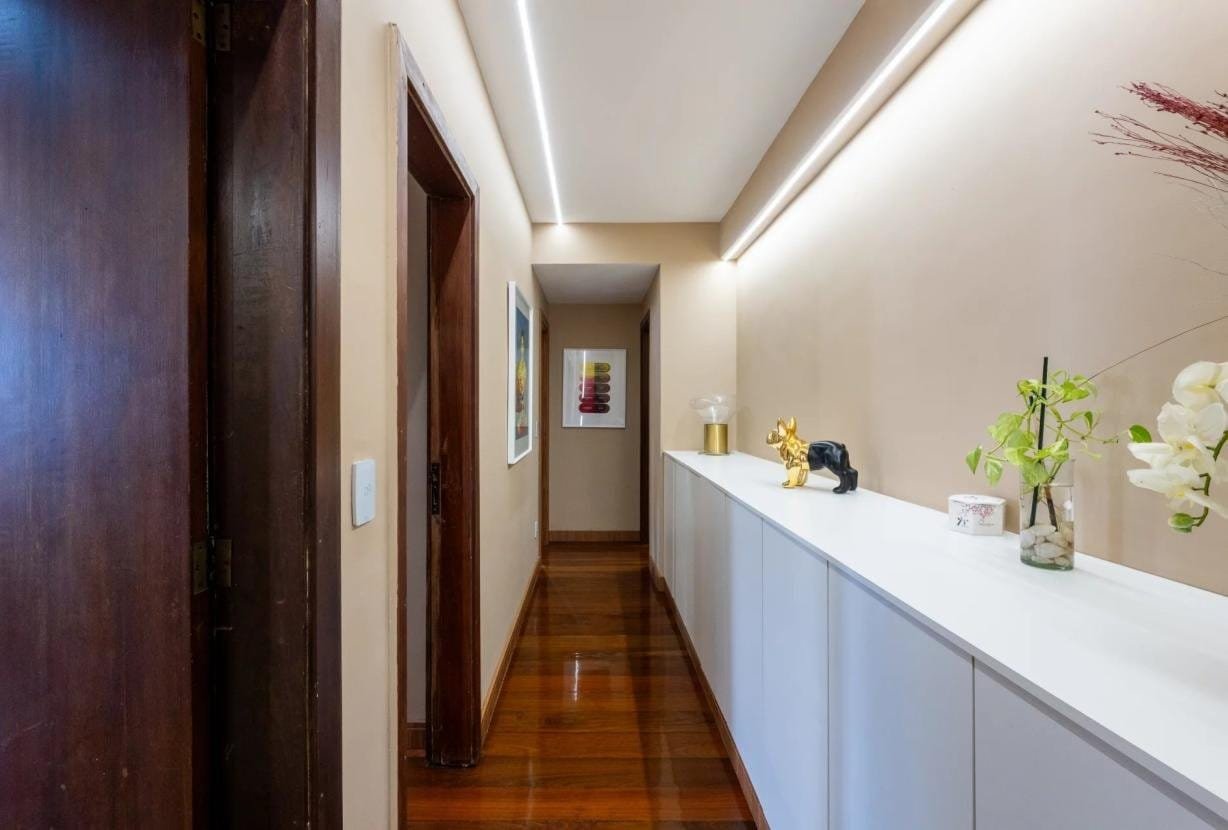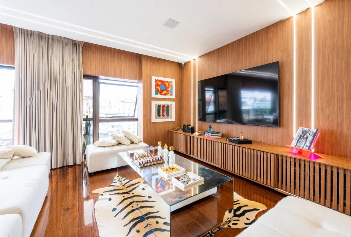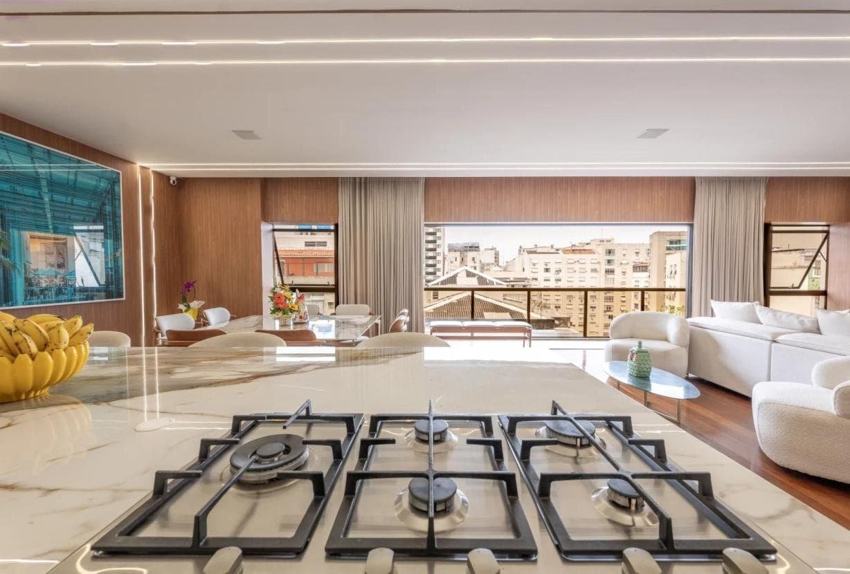 Completamente remodelado em 2024, o imóvel impressiona pelas linhas limpas, pela luminosidade abundante e por uma organização espacial impecável. O grande destaque é a magnífica sala de estar de 90 m² orientada para sudoeste, inundada de luz natural e conectada a uma ampla varanda com vista totalmente aberta — um cenário privilegiado para contemplar o pôr do sol do Rio em absoluta paz.