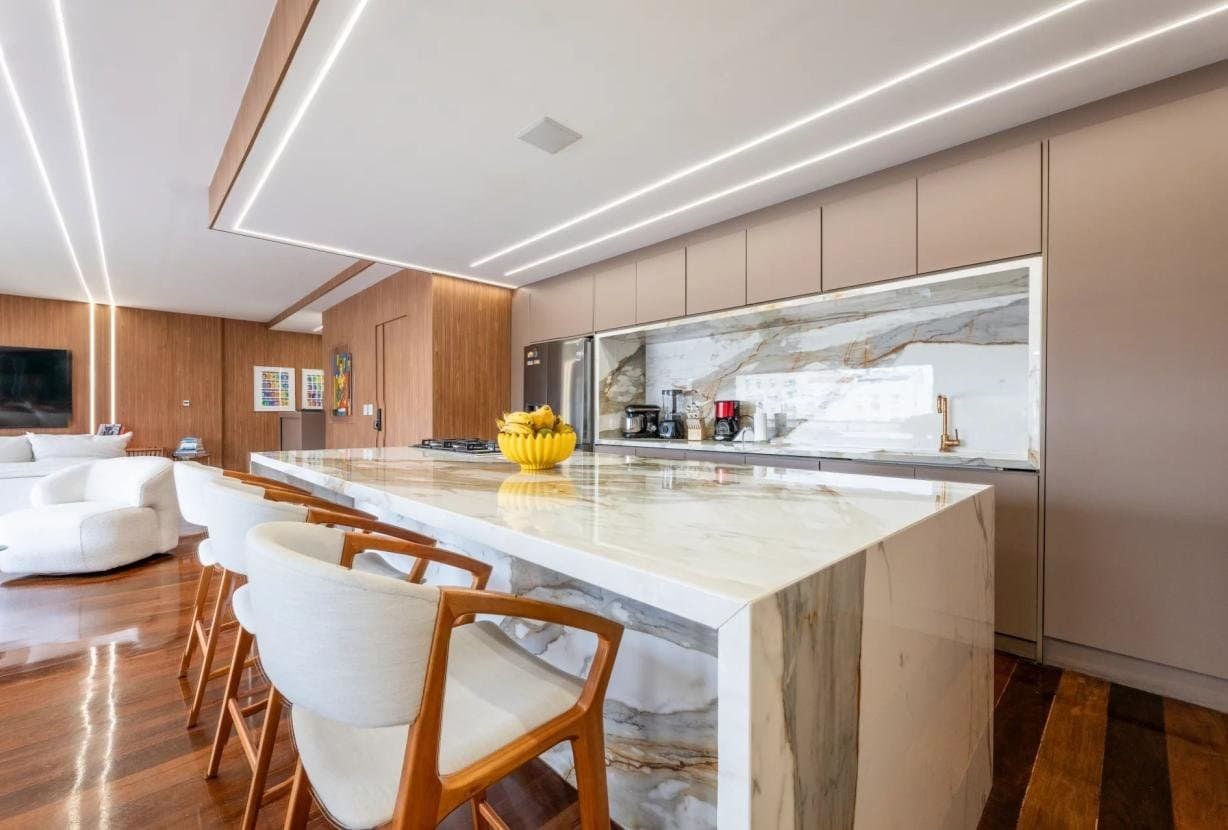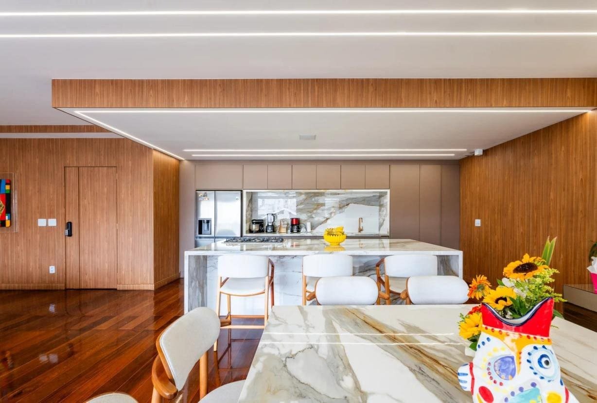 O ambiente inteiro cria uma atmosfera convidativa, ideal tanto para encontros íntimos quanto para receber convidados com estilo.