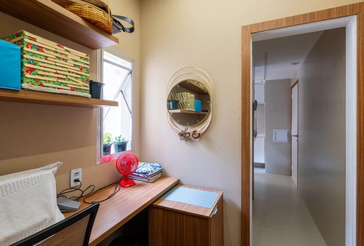 Para completar, há um escritório dedicado, além de área de serviço equipada e espaços de arrumação que reforçam a praticidade do layout.